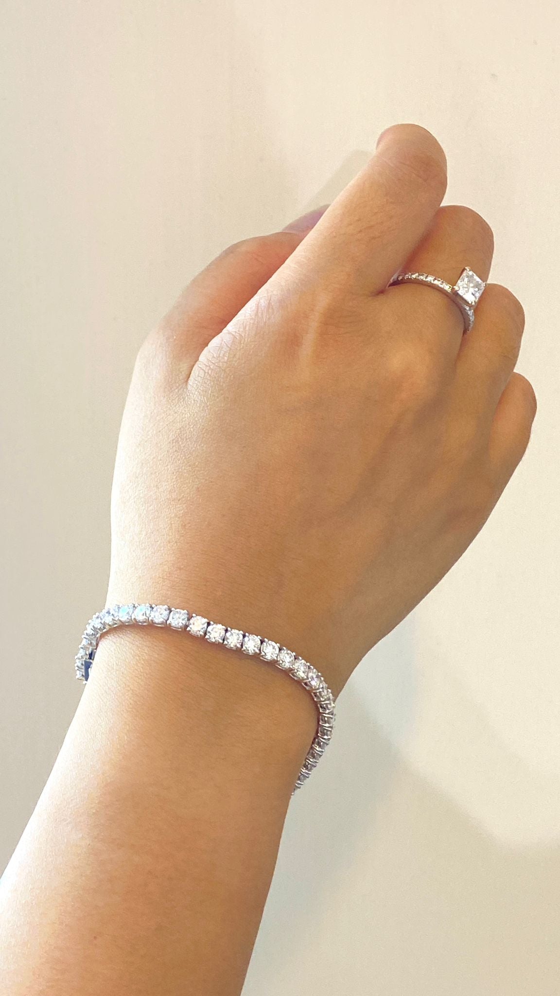 培育鑽石電鍍白網球手鏈 5份 1粒共3.4ct tennis Bracelet